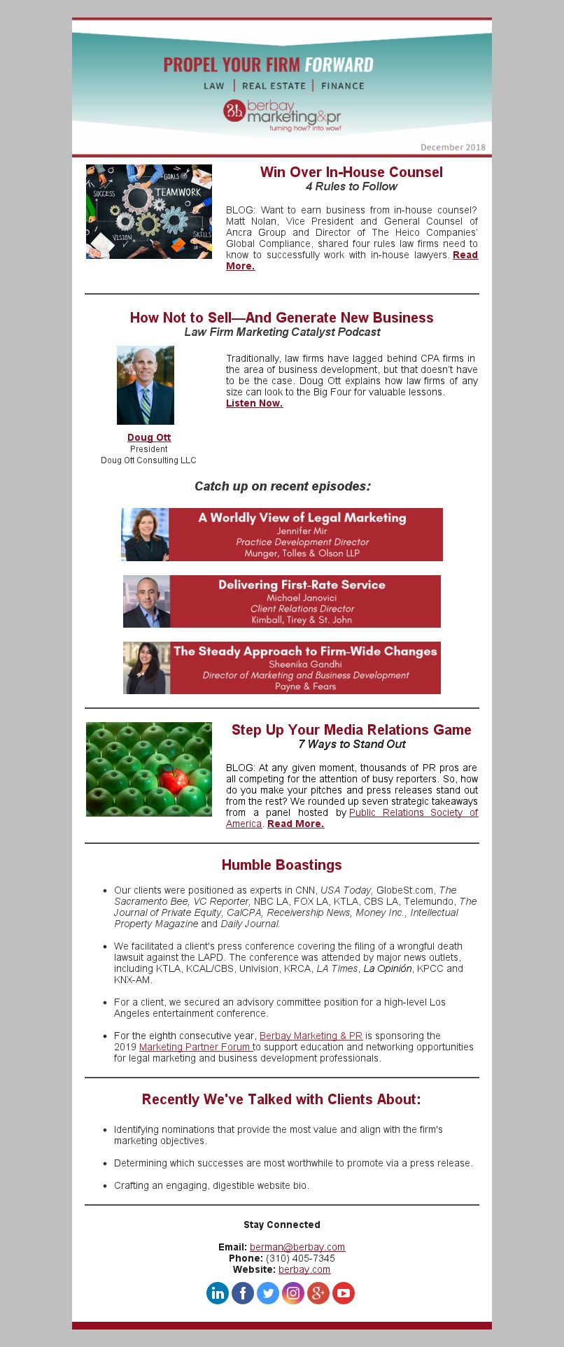December 2018 Newsletter – Want to Earn Business from In-House Counsel? Here’s How.